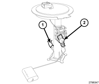 The fuel level sending unit (2) on the secondary fuel pump module is not serviceable. If any component of the secondary fuel pump module requires service, the secondary fuel pump module must be replaced as an assembly.