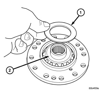 3. Install pinion gear (2) and thrust washer (1) into case.
