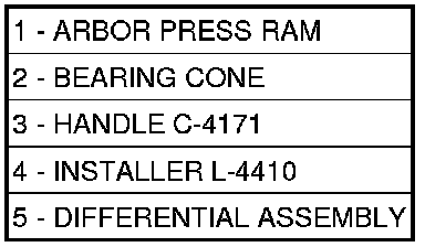 8. Using an arbor press (1)(Figure 8), Handle (3), and Installer (4), install differential side bearing to ring gear side.
