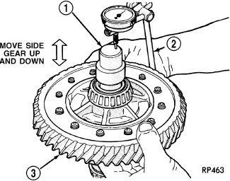 3. Using the smallest end play recorded, shim that side gear to within 0.001 to 0.013 inch. The other side gear should be checked using the same procedure.