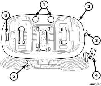 6. Position the courtesy/reading lamp assembly (2) into the headliner (3).