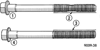 The bolts must be examined BEFORE reuse. If the threads are necked down the bolts must be replaced.