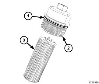 15. Install the new oil filter (3) into the oil filter cap (2).