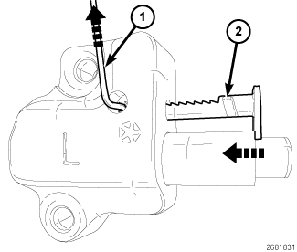 1. Using a suitable tool, such as an allen wrench (1), lift the pawl off of the rack.