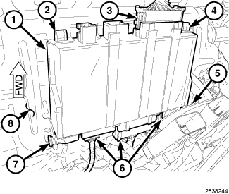 4. Disengage the two rear MSM retaining tabs (5 and 7) from the bracket (8) by carefully pushing the rear of the MSM upward.