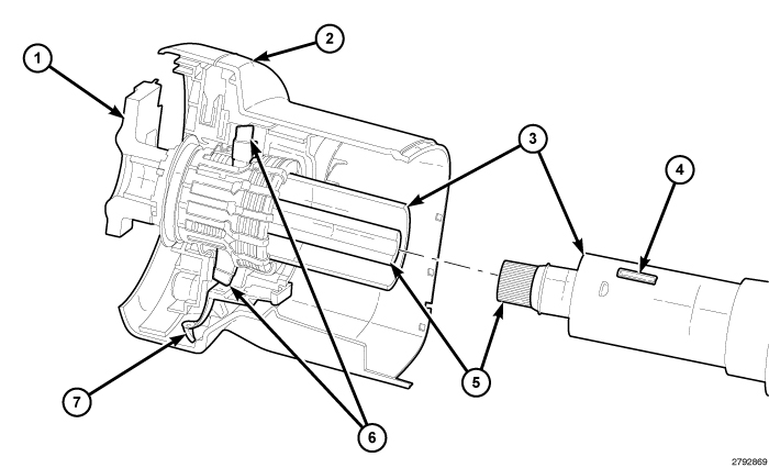 5. Align the hub of the SCCM with the upper steering column shaft (5) and jacket (3).