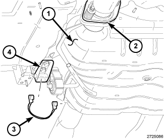 11. Install transmission crossmember reinforcement brackets (1, 4). Tighten bolts to 55 Nm (41 ft. lbs.).