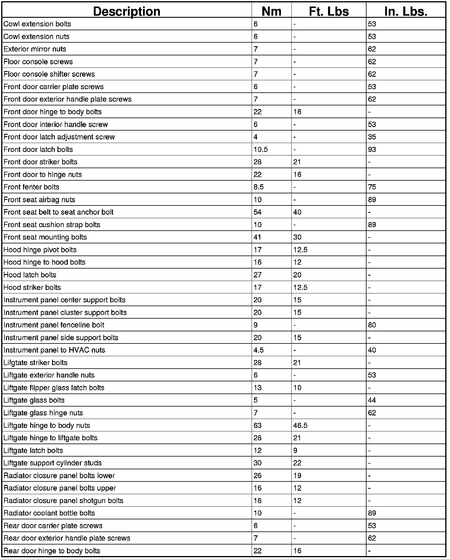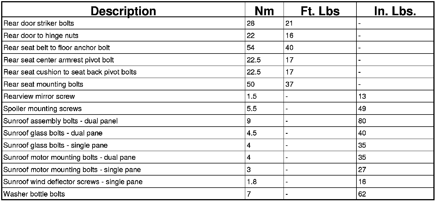 TORQUE SPECIFICATIONS - BODY