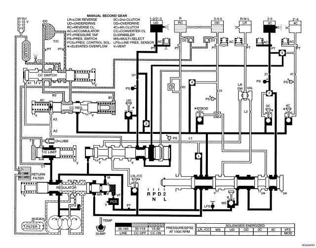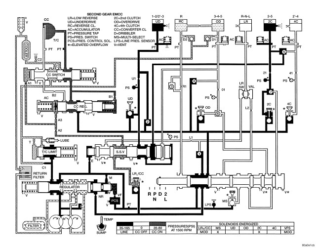 Figure 9 - HYDRAULIC FLOW IN SECOND GEAR EMCC