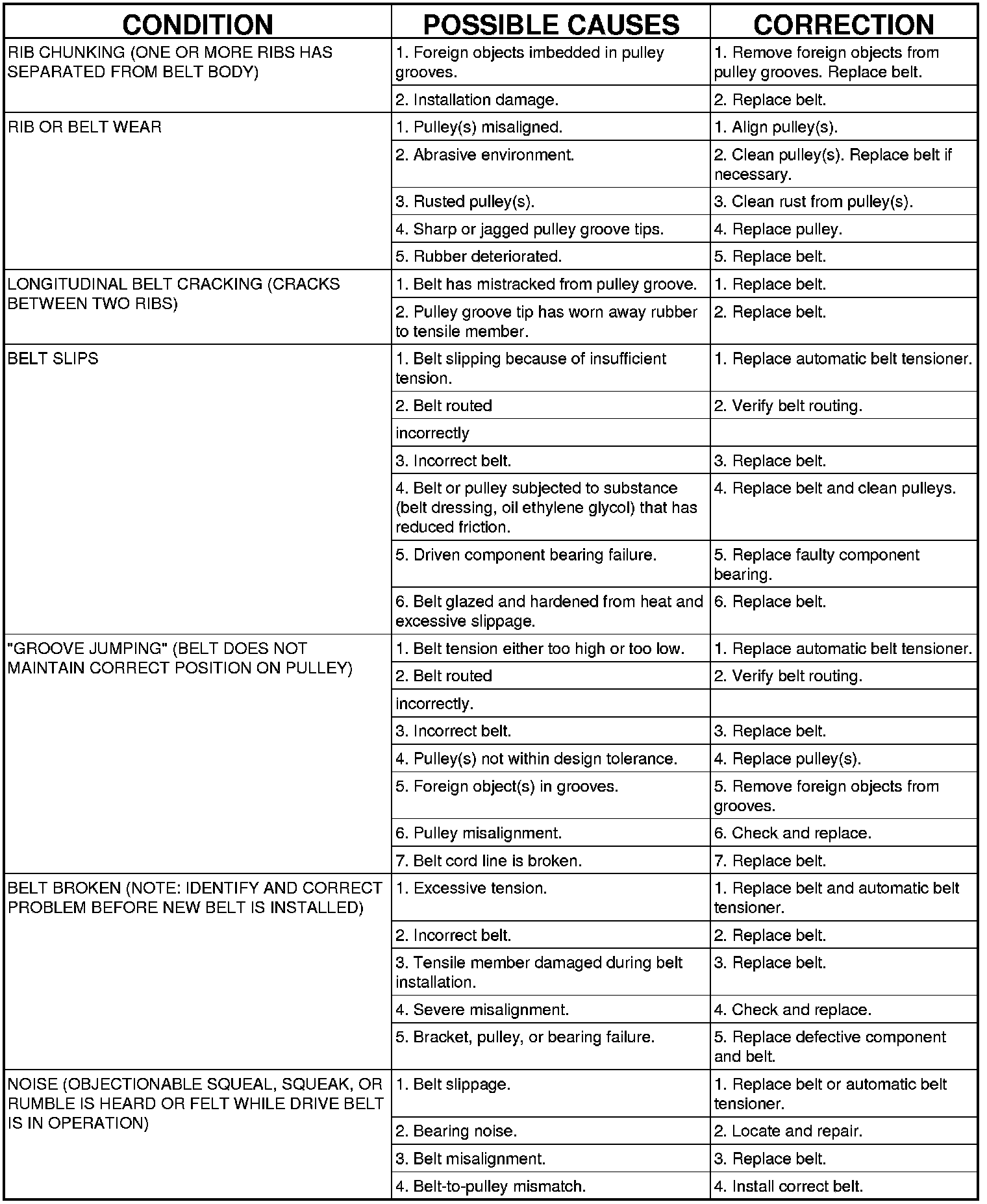SERPENTINE DRIVE BELT DIAGNOSIS CHART