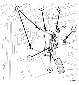 The Accelerator Pedal Position Sensor (APPS) (6) is attached to the accelerator pedal assembly under the instrument panel.