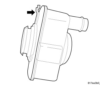 1. A lock tab (see arrow) is used on the back of the switch. Position the ESIM switch into the EVAP canister and rotate switch until the electrical connector is in 3 O'clock position and the locking tab locks into position.