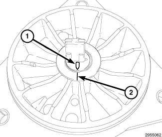 1. Align arrow (1) on the encoder shaft with alignment mark (2) prior to installing the encoder.