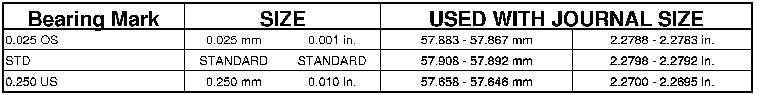 8. If bearing-to-journal clearance exceeds the specification, determine which services bearing set to use the bearing sizes are as follows: