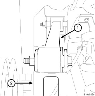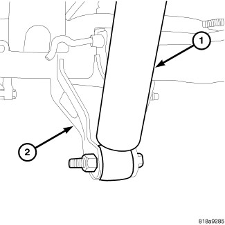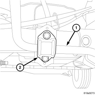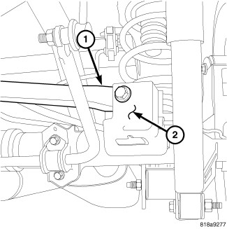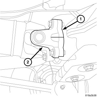 12. Remove lower control arm (1) mounting bolts from axle brackets (2).