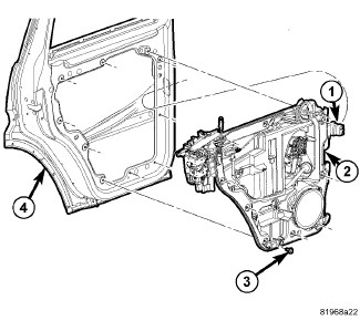 4. Install the carrier plate to the door, Rear Door Glass - Installation.