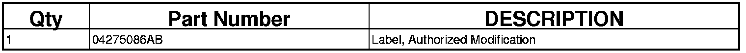7. Type the necessary information on the "Authorized Modification Label" (p/n 04275086AB) and attach near the VECI label