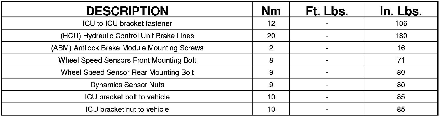 TORQUE SPECIFICATIONS
