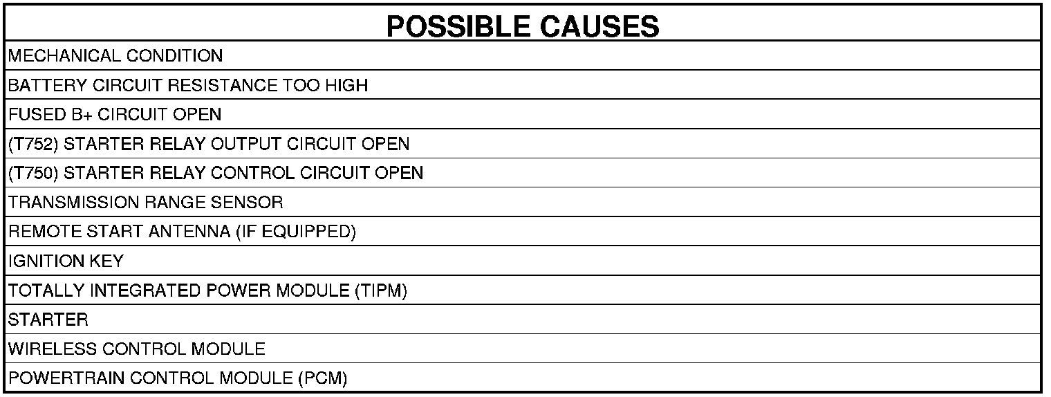 - Repair the open in the (T750) Starter Control Output circuit.