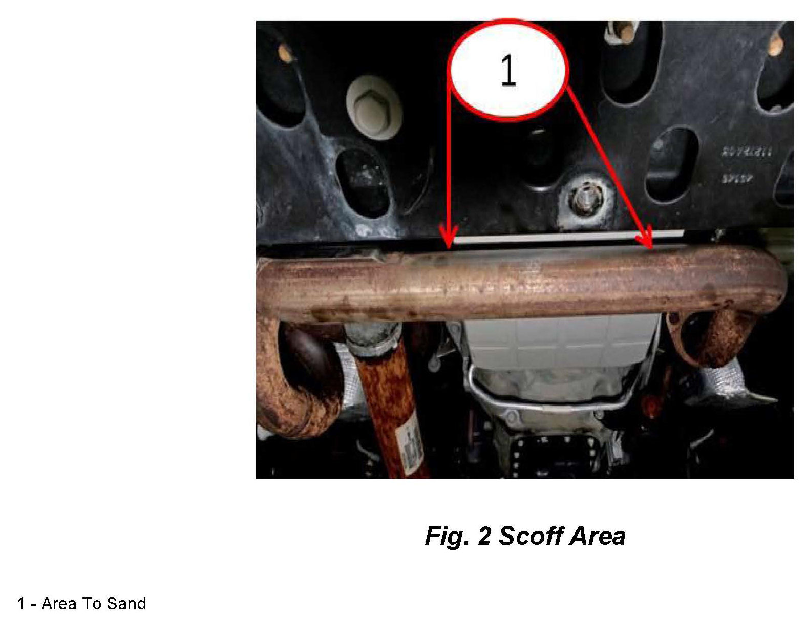 4. Locate y-pipe, using a grey scuff pad, lightly sand the surface to a matte like appearance (Fig. 2).