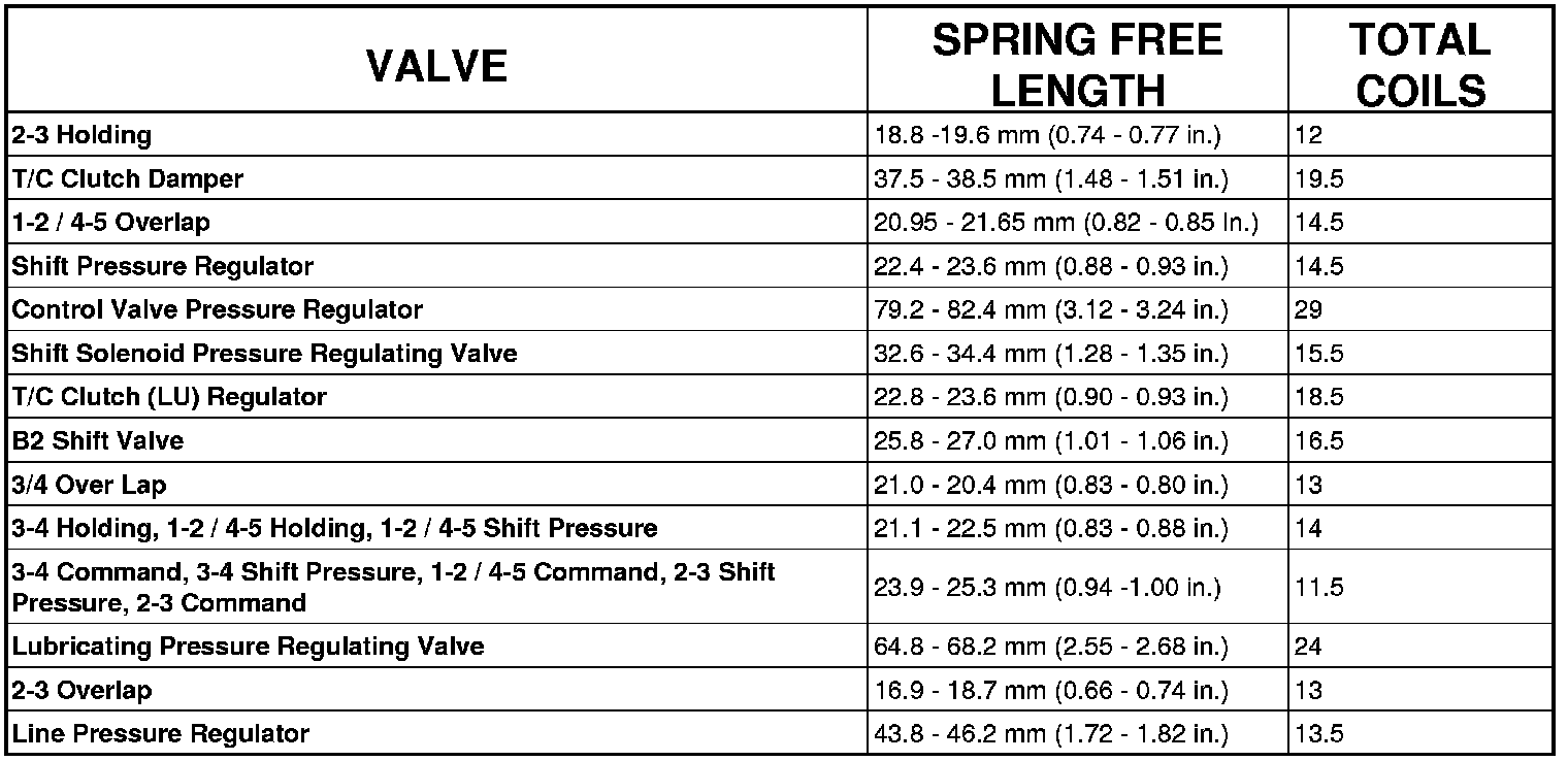 NAG1 VALVE BODY SPRING DIMENSION