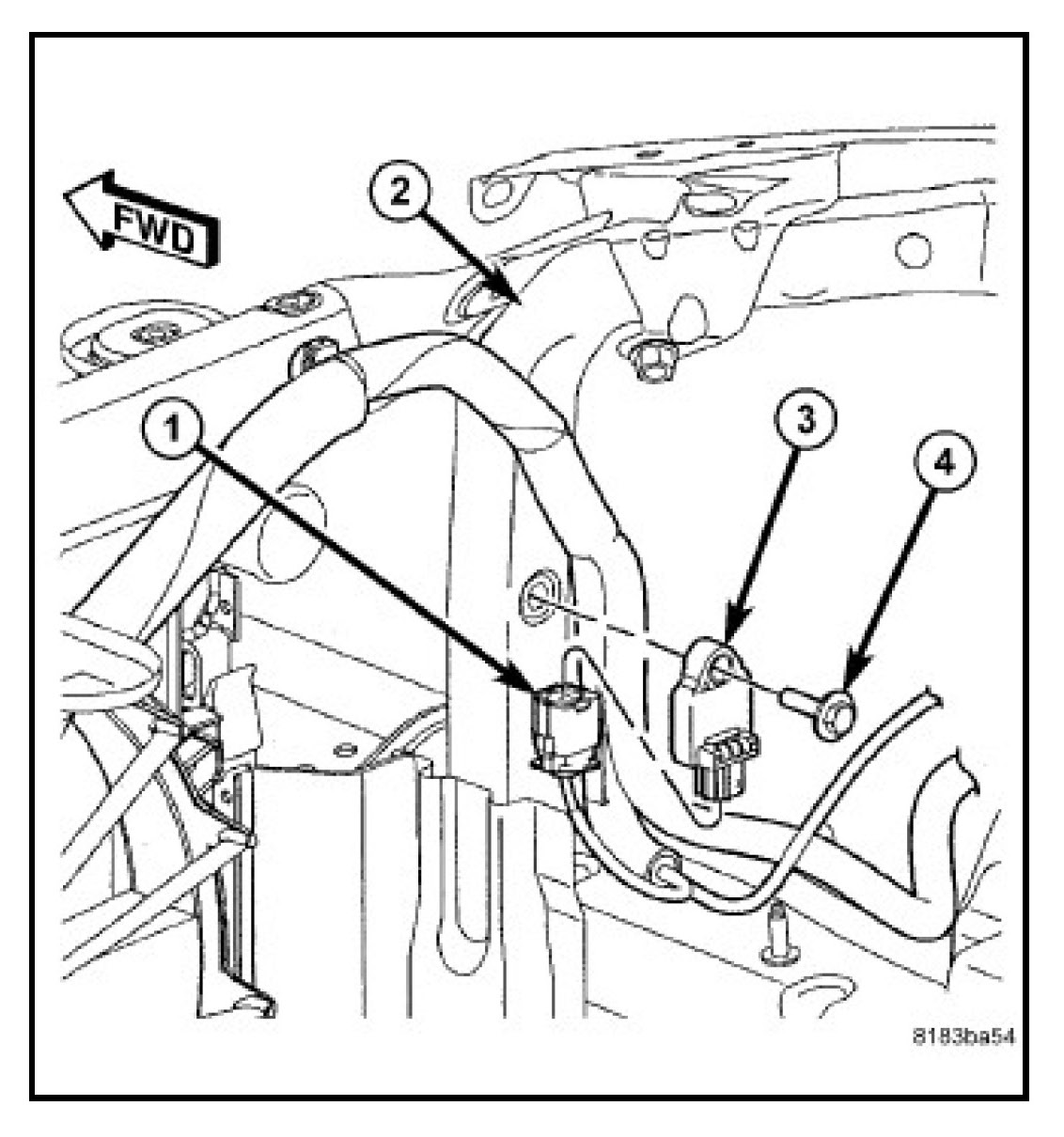 4. Install and tighten the screw (4) that secures the sensor to the back of the support vertical member. Tighten the screw to 8 N.m (70 in. lbs.).