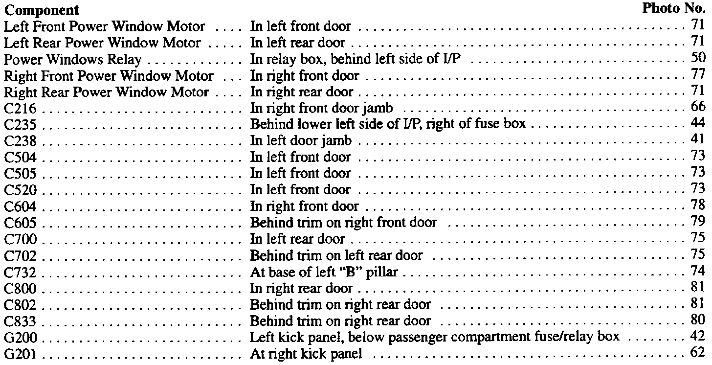 Power Windows-Component Location Index: