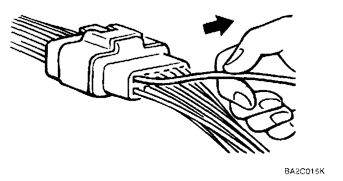 3. When a tester is used to check for continuity or to measure voltage, insert tester probe from wire harness side.