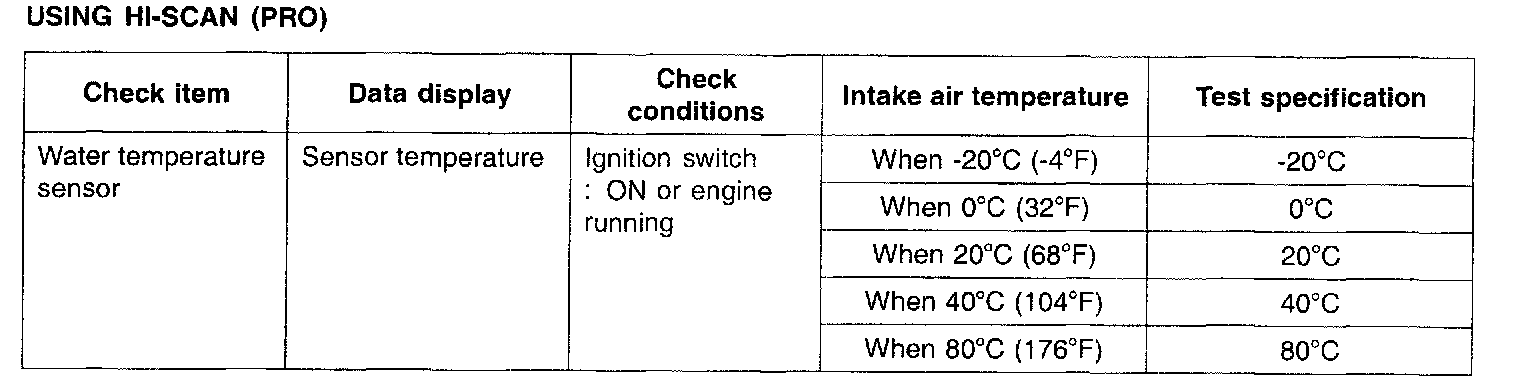 Engine coolant temperature sensor: 20 - 40 N.m (200 - 400 kg.cm, 14 - 29 lb-ft)