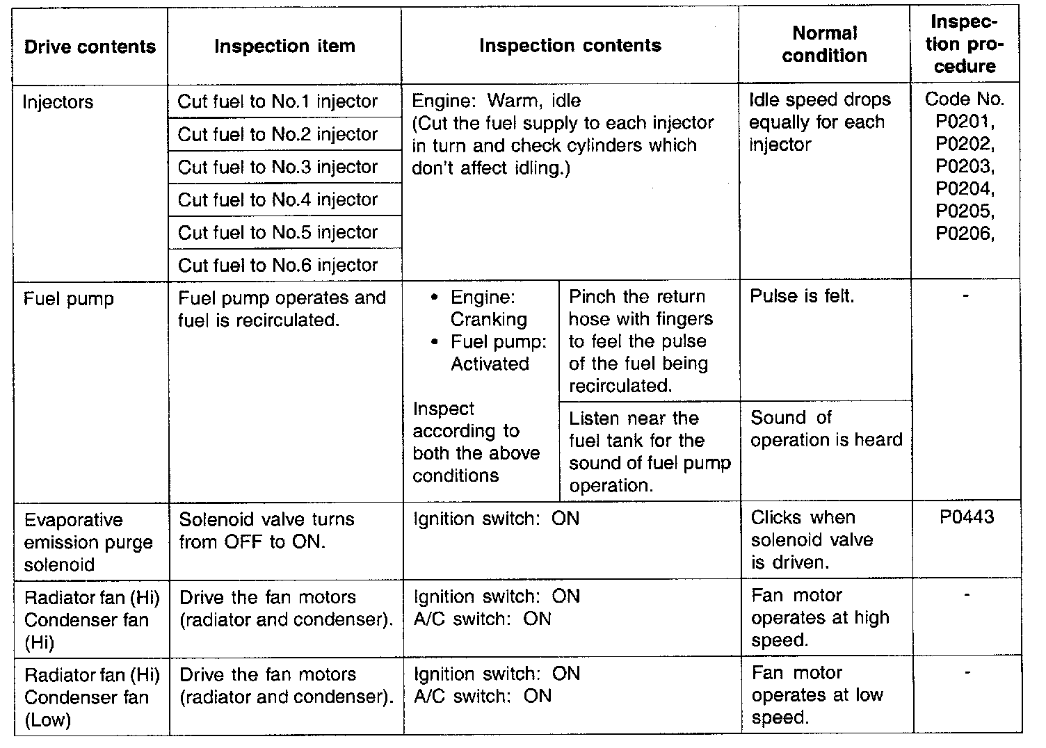 Actuator Test Reference Table: