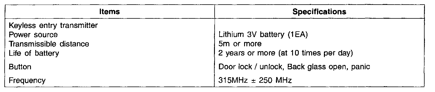 Keyless Entry: Specifications