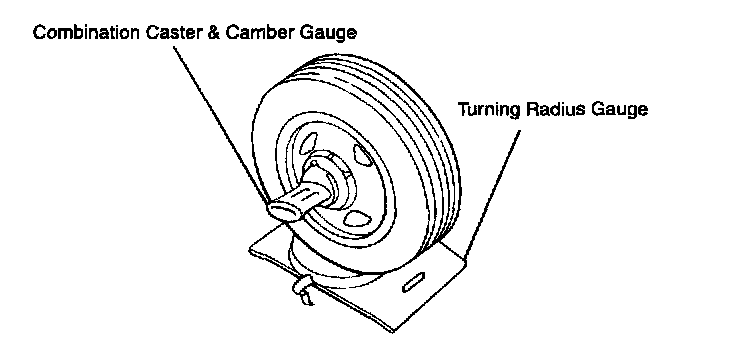 1. Position the vehicle so that the front wheel is on the turning-radius gauge.