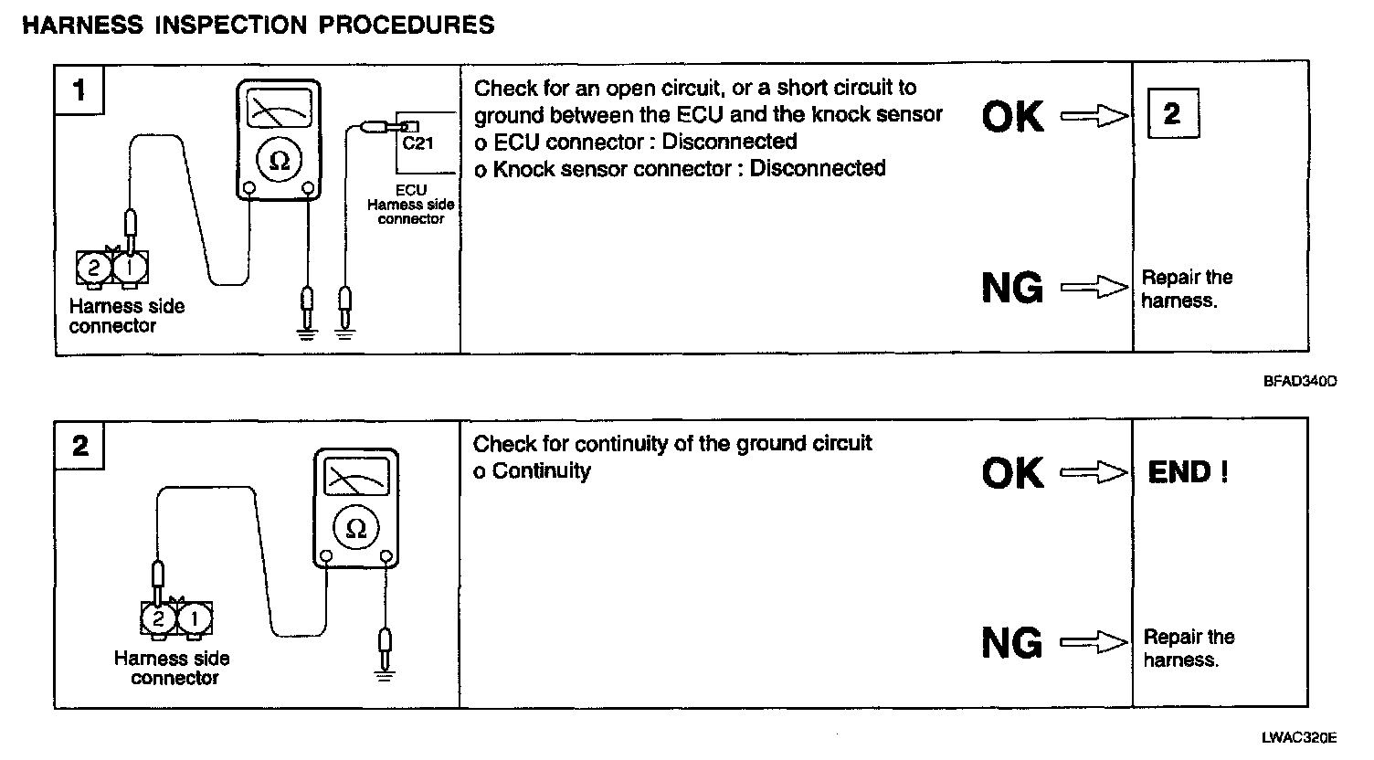 - When the knock sensor signal is not detected, even though the engine is in an overload condition