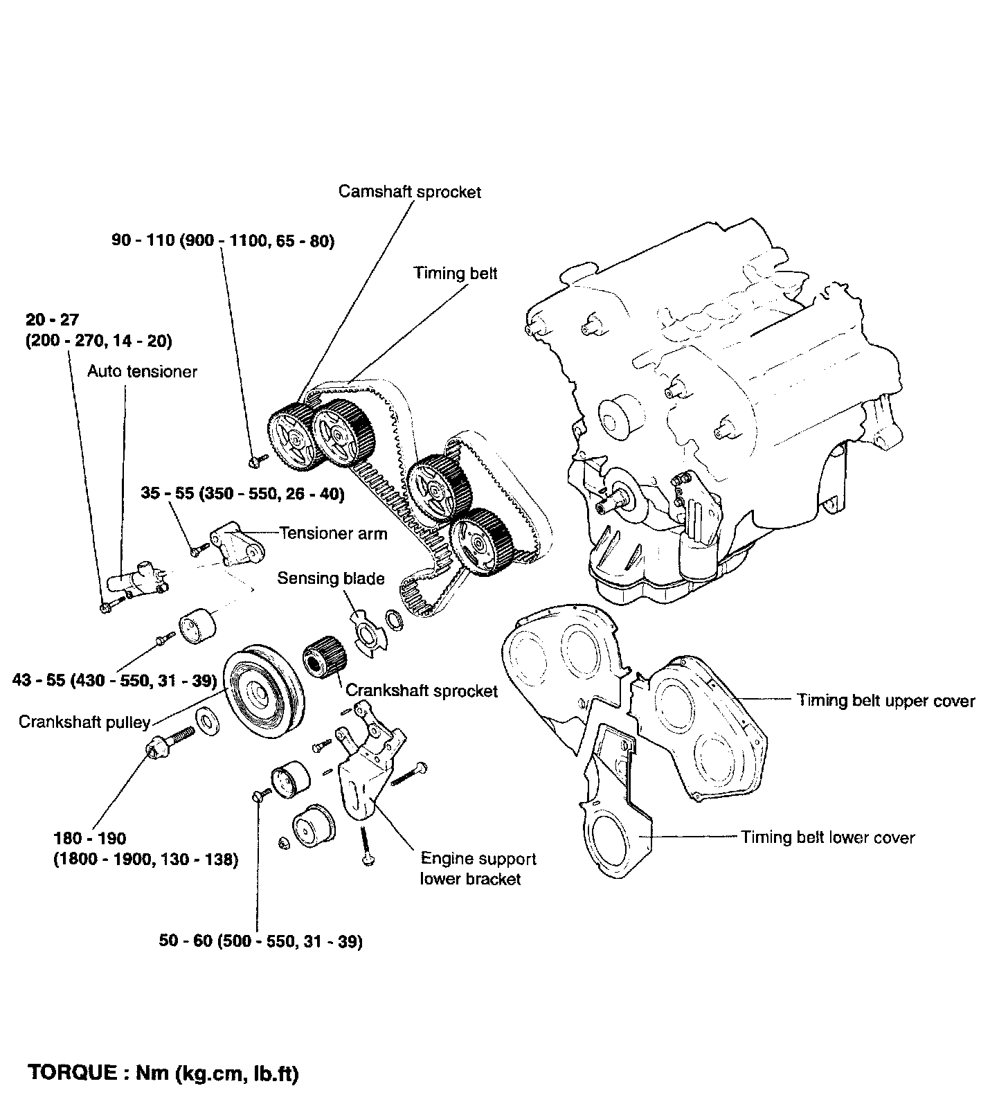 NOTE: When re-using timing belt, make sure of marking the rotating direction on the belt so as to install correctly.