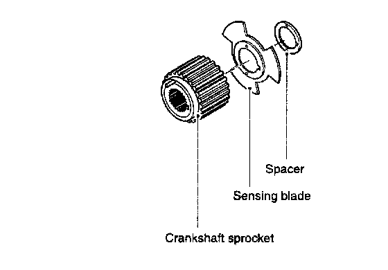 CAUTION: Align the spacer with a pin, and assemble it exerting even force not to deform the crankshaft sensing blade.