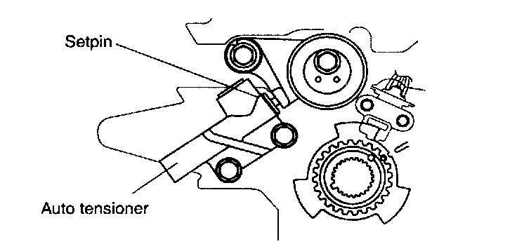 CAUTION: At this time the auto tensioner's set pin should be assembled completely.
