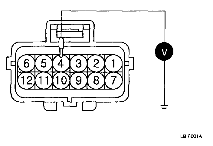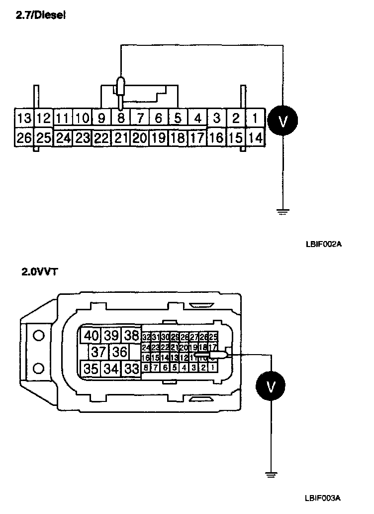4. Measure the voltage between the cruise control terminal of the TCM(or PCM) connector and ground.