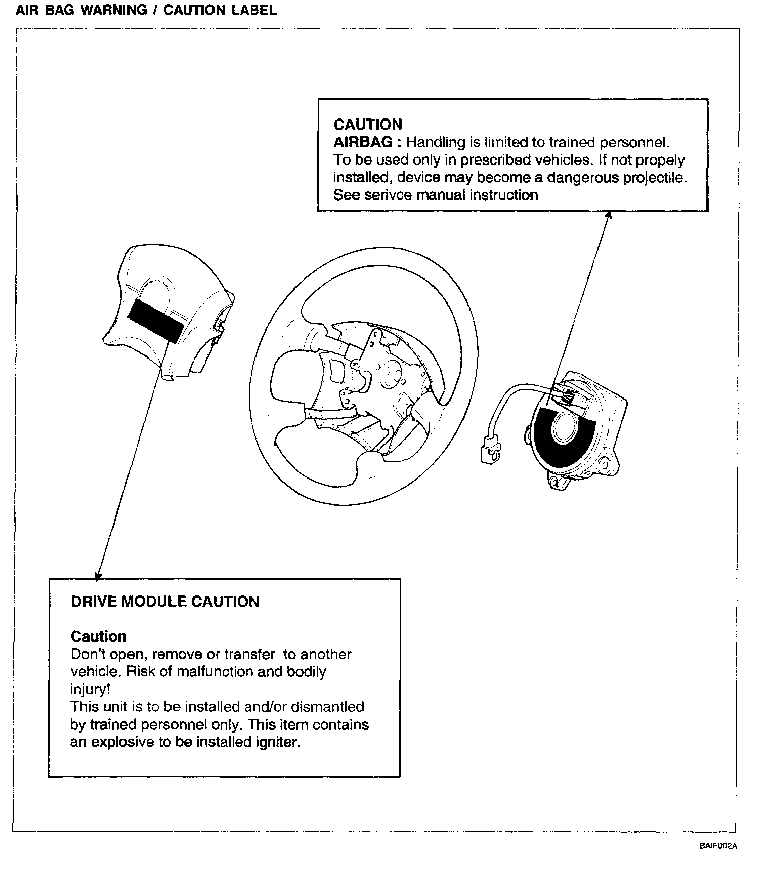 WARNING/CAUTION LABELAir Bag Warning/Caution Label: