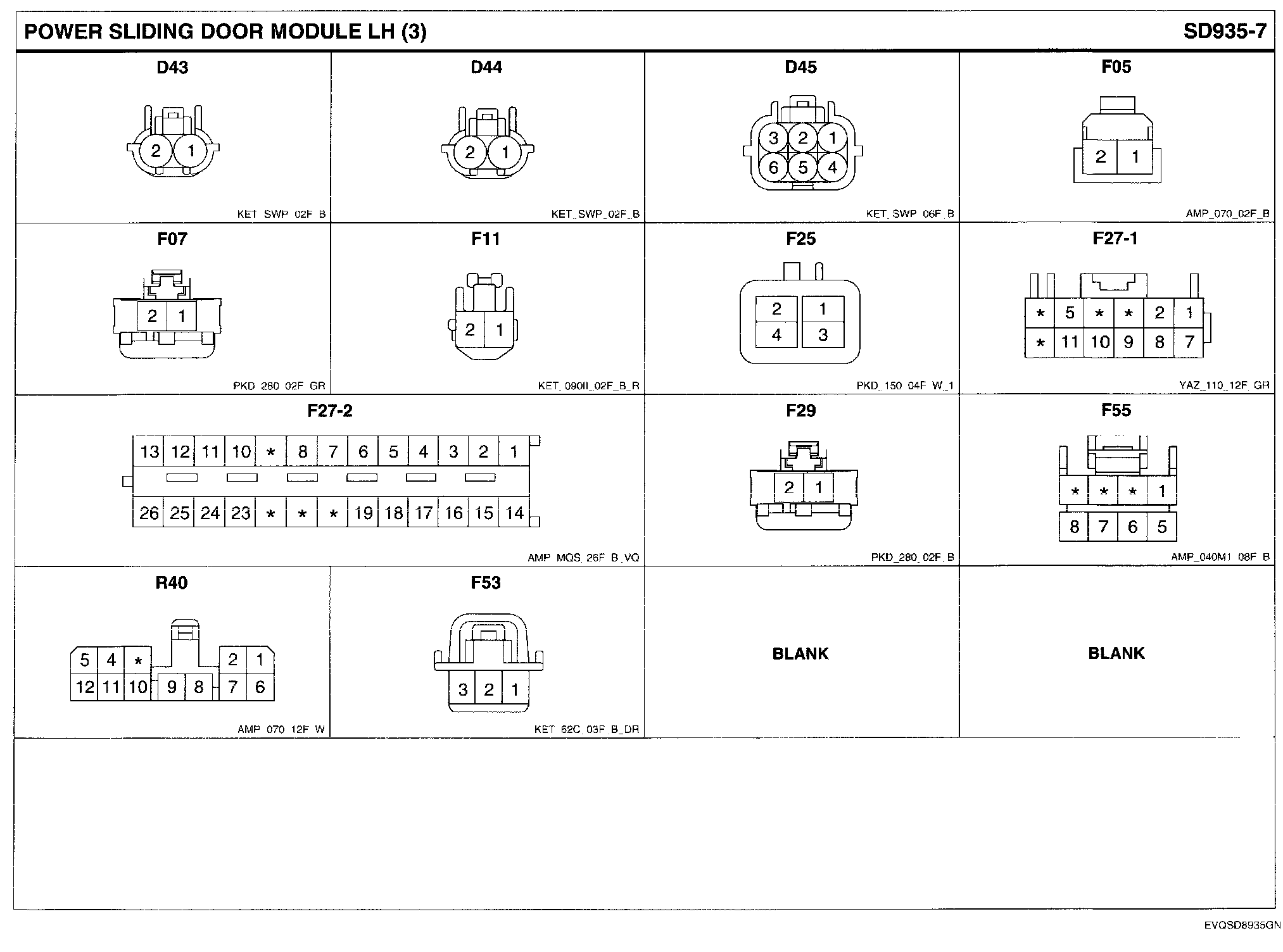 Power Sliding Door Module LH Connector Pin Outs: