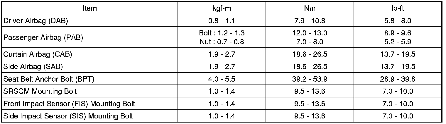 TIGHTENING TORQUES