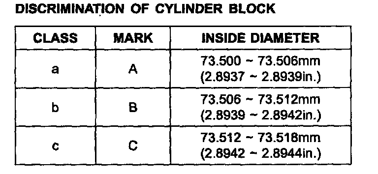 6. Check the cylinder bore size code on the cylinder block.