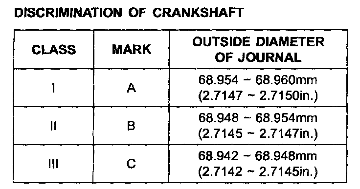 Use them, and the numbers or bar stamped on the crank (marks for main journal size), to choose the correct bearings.