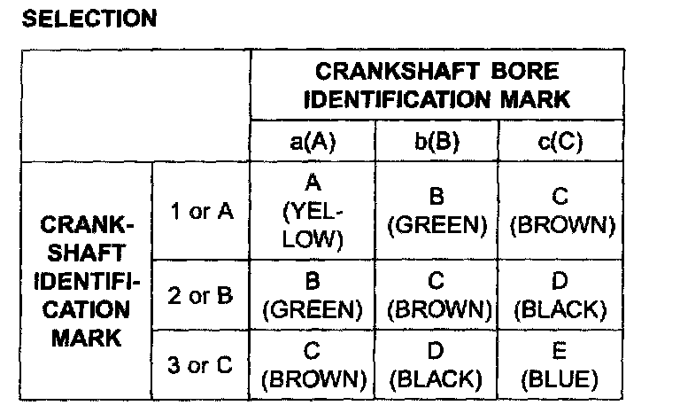 If the proper clearance cannot be obtained by using the appropriate larger or smaller bearings, replace the crankshaft and start over.