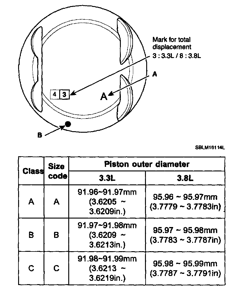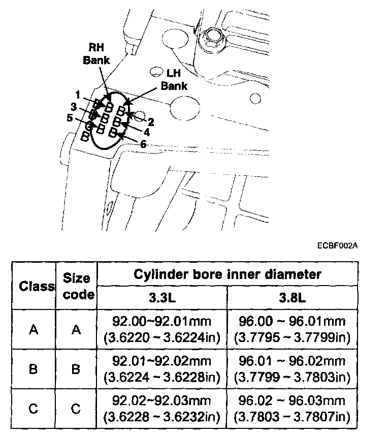 96.00 - 96.03mm(3.7795 - 3.7807in) - 3.8L