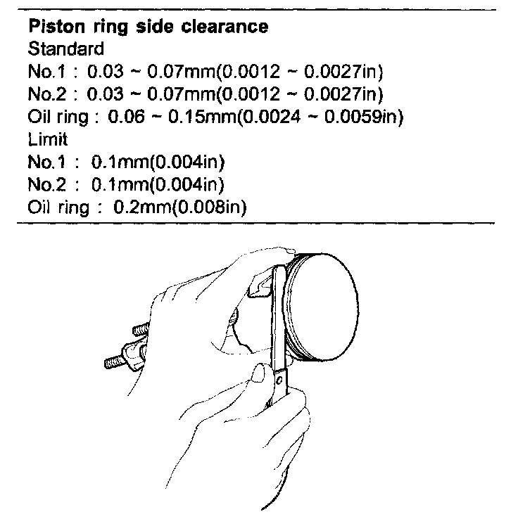 4. Inspect the piston ring side clearance.