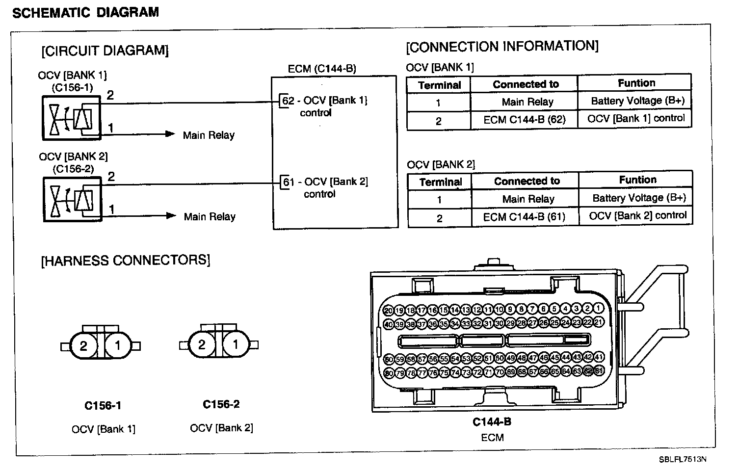 CAUTION: If the OCVs are installed incorrectly, the vehicle may be damaged. So when installing them, pay attention to connector color (Components and harness side).