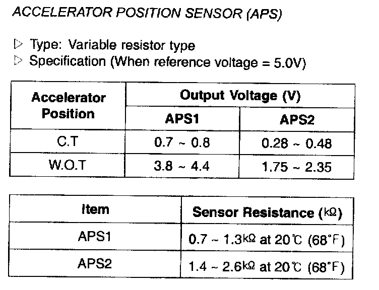 Accelerator Position Sensor (APS) - Specification: