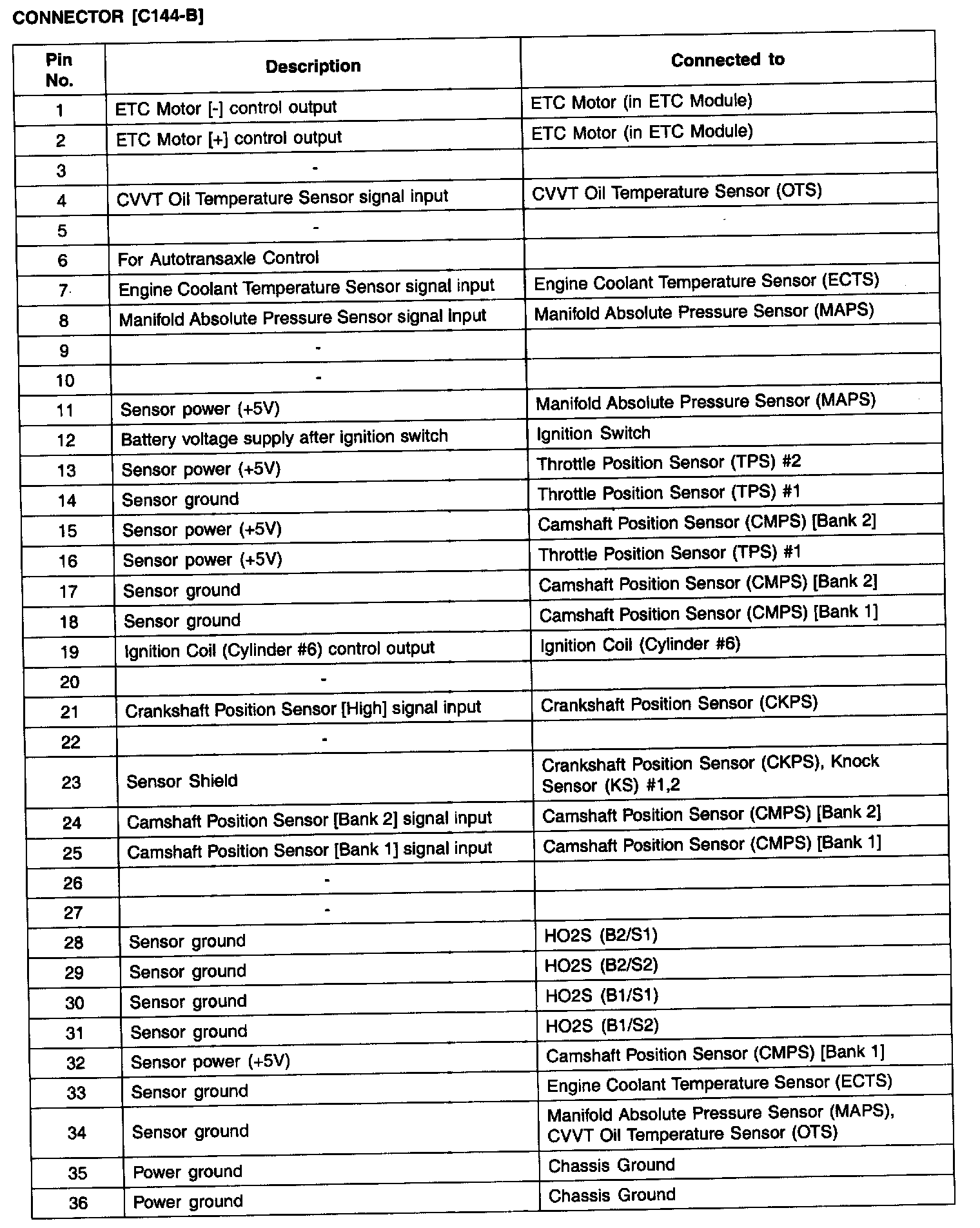 ECM Terminal Input/Output Signal - C144-B (Part 4):