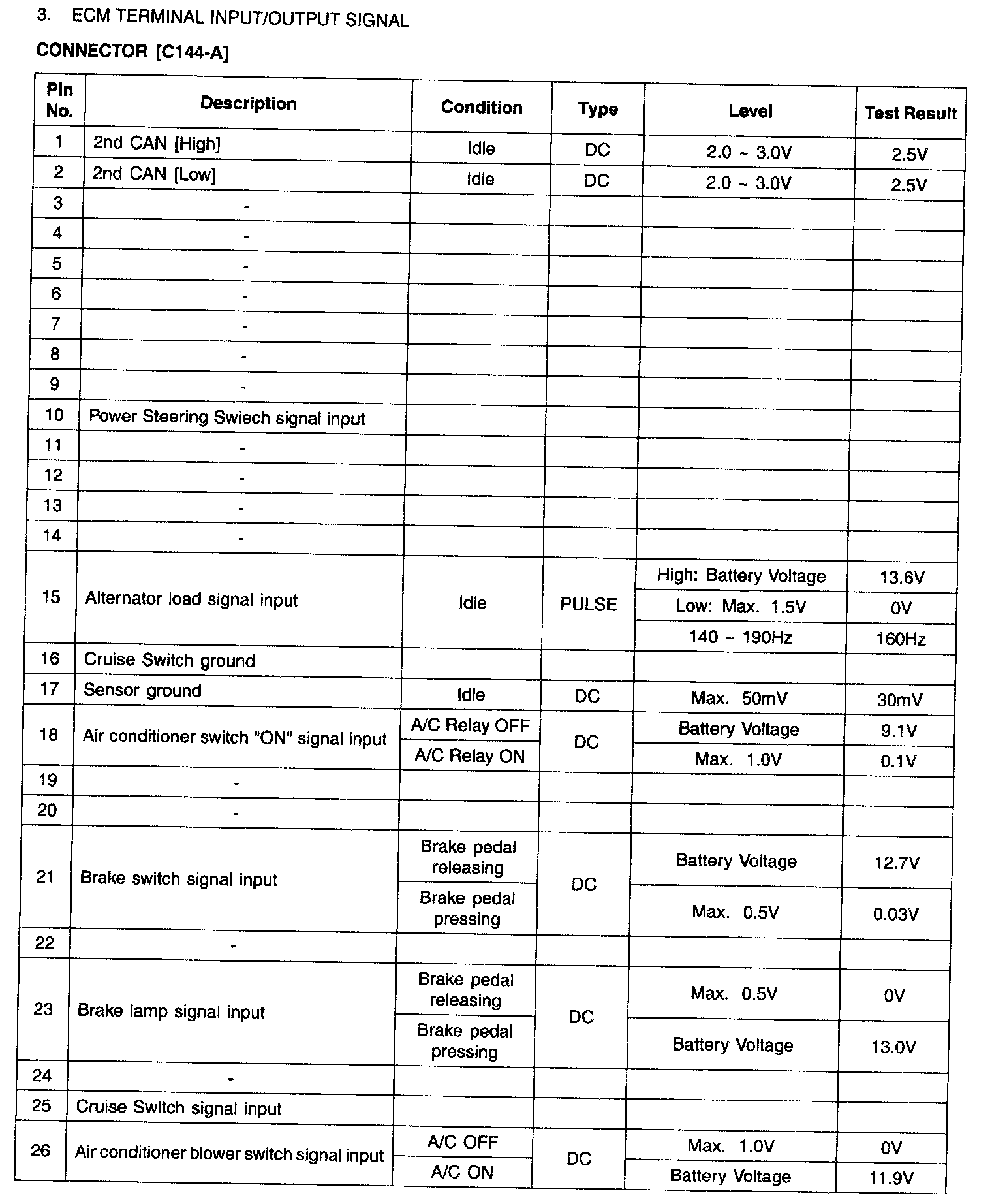 ECM Terminal Input/Output Signal - C144-B (Part 3):