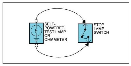 Use a self-powered test lamp or an ohmmeter to check for continuity.